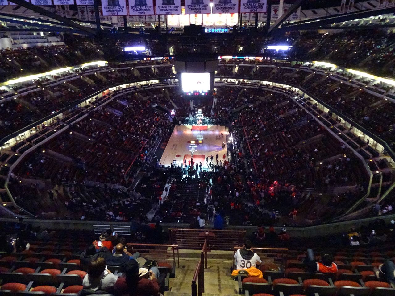 ユナイテッド・センターの300レベルは最上階層となります。そのため300レベルからは選手の顔をしっかり見るのは難しくなります。