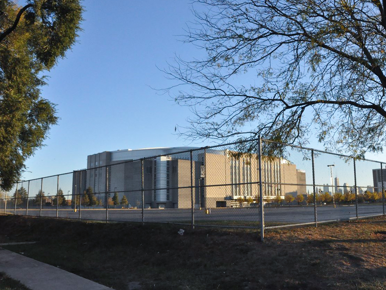 会場周辺は駐車場が多く、最寄のIllinois Medical District駅からアリーナへの道は閑静なエリアになっています。